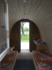 Кемпинг дом изготовлен из хвойных пород древесины. Кровля из мягкой черепицы обеспечивают защиту от осадков.